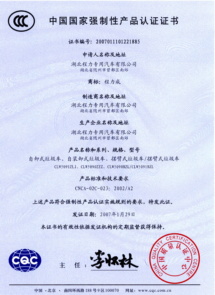 國家強制產(chǎn)品認證 | 湖北程力集團登記證 |