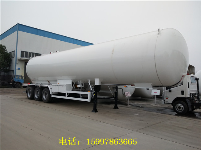 56立方液化氣半掛車配備有安全閥、溫度計、壓力表、液位計等安全附件,另外,可以設計成單側(cè)出液,雙側(cè)裝卸;也可以做成雙側(cè)獨立進出液。