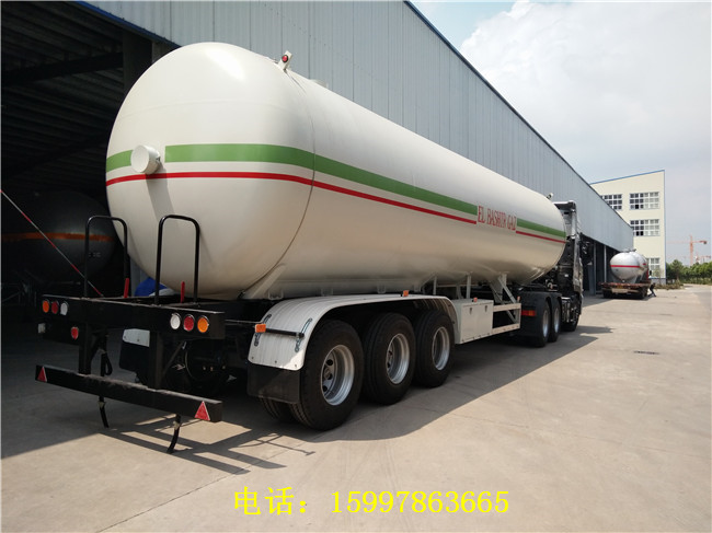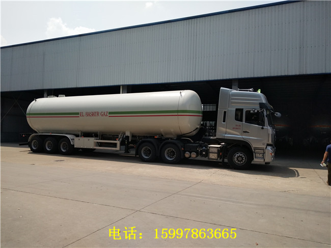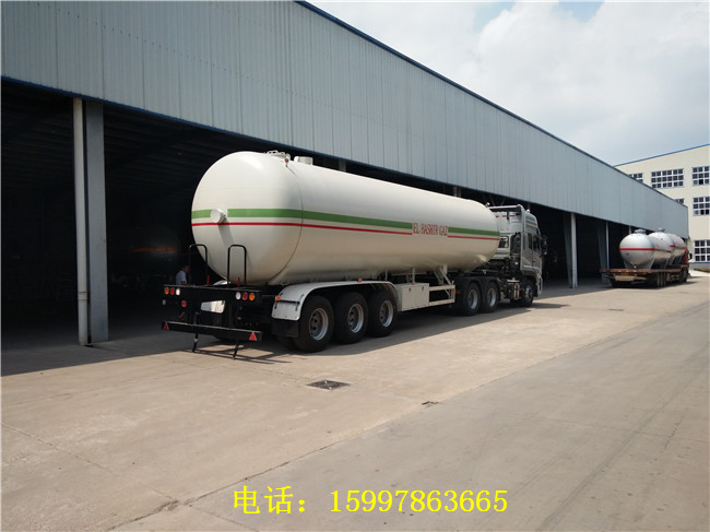 54立方LPG半掛車按照GB150-2011《壓力容器》設(shè)計制造,采用應(yīng)力分析方法設(shè)計,使用Q345R材質(zhì)制作,罐體上設(shè)計有液位計、安全閥、溫度計、壓力表等安全附件,罐體內(nèi)部還設(shè)有防浪板。