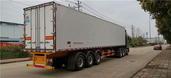 冷藏半掛車廂體頂部封閉,不可開啟;可選裝功率相當(dāng)?shù)钠渌吞栔评錂C組;選裝單側(cè)門,雙側(cè)門,對開門,無側(cè)門結(jié)構(gòu)。此款冷藏半掛車選用凱雪獨立的制冷機組。