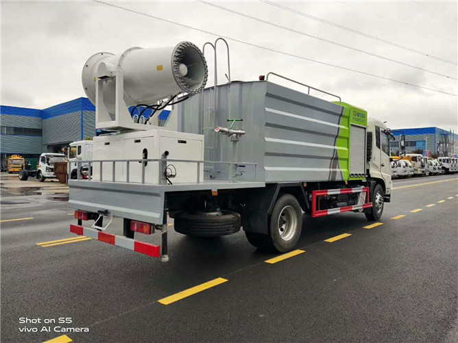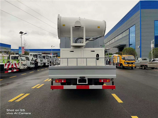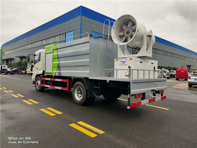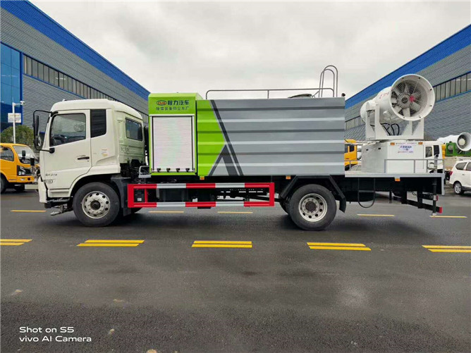 東風(fēng)天錦抑塵車配備前沖、后灑、側(cè)噴(均采用6個T型球閥駕駛室自動操作控制)高炮、加大工作平臺,前置卷簾門消音發(fā)電機(jī)倉,中置加大容量方型水箱,罐體滿載容積12立方(罐內(nèi)采用環(huán)氧玻璃鱗片防腐處理質(zhì)保兩年),是一款配置不錯的環(huán)衛(wèi)車。