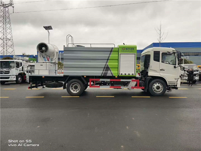 12立方東風(fēng)多利卡D9抑塵車,環(huán)保免征齊全,搭載玉柴200馬力/康機(jī)210馬力發(fā)動(dòng)機(jī),水罐溶積12立方,大平臺(tái)最高可裝100米車載專用霧炮,整車不超重。