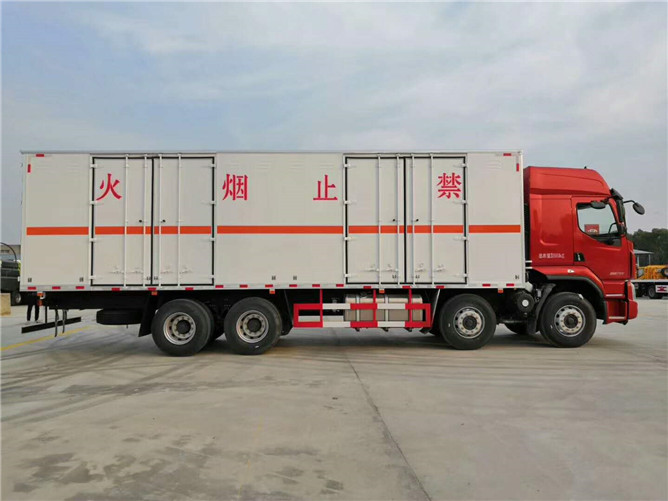 嚴(yán)格按照公告尺寸制作,外板采用1mm厚冷軋板有一次性成型的百葉窗,內(nèi)飾為導(dǎo)電性能良好的鋁板有透氣孔,內(nèi)襯為矩形管骨架牢靠穩(wěn)定,內(nèi)部填充為透氣防潮阻燃的擠塑板,四種材料經(jīng)現(xiàn)代工藝復(fù)合而成,廂體外部上下鋁合金型材包邊,底板和車廂前下部鋪橡膠皮,后門雙開,右側(cè)兩個(gè)雙開門,內(nèi)部有固定貨物的臥環(huán),車輛外部有靜電帶、滅火器、防火罩,車廂內(nèi)安裝煙霧報(bào)警器和門防盜報(bào)警器,嚴(yán)格按照國家危險(xiǎn)品相關(guān)法規(guī)張貼。