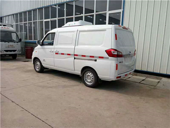 福田伽途冷藏車搭載北汽福田國五86馬力汽油發(fā)動機,功率為63kw,排量為1.2L,變速箱為5檔手動變速箱;麥弗遜獨立前懸掛;鋼板彈簧后懸掛;軸距2700mm;油剎,前盤后鼓,輪胎數為4個;175/70R14LT真空胎;總質量1810kg,額定載質量485kg,整備質量1195kg;廂體內部尺寸:1380×1330×980(mm),容積為1.8立方米;上藍牌,C證可以駕駛。