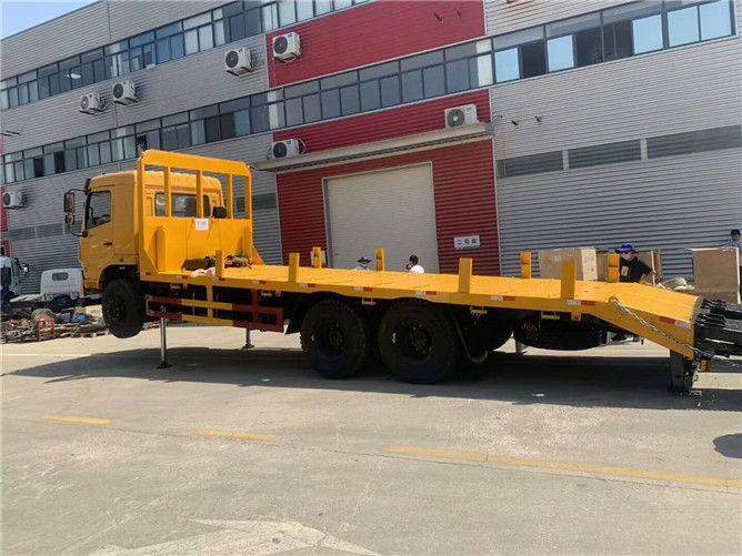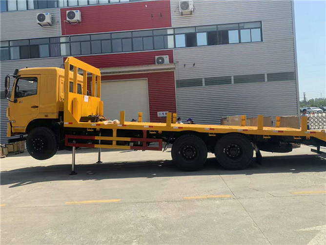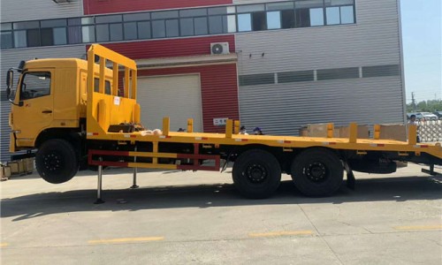 東風華神平板運輸車,加裝前液壓支腿,液壓折疊爬梯,2個卷揚!EQ5250TPBL,玉柴240馬力,4350+1300軸距,法士特八檔變速箱,雙層280車架,前后橋5T/10T。11.00R20鋼絲胎。遮陽罩,中控鎖,氣囊座椅,空調(diào),行車記錄儀。整車尺寸:10800/9890*2500*3250。