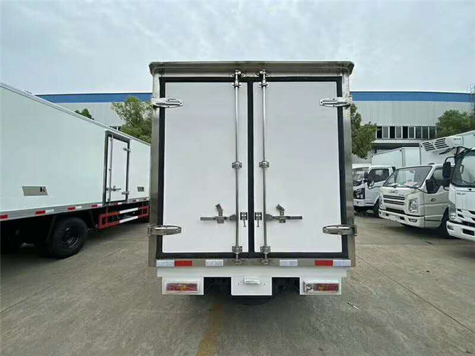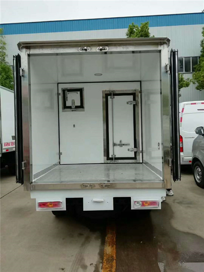 廂體采用內(nèi)外玻璃鋼,八公分保溫板,后雙開門,后門不銹鋼包邊,不銹鋼鎖件,鋁花紋底板,側(cè)開門,隔板上加門,隔板左上部加窗戶。