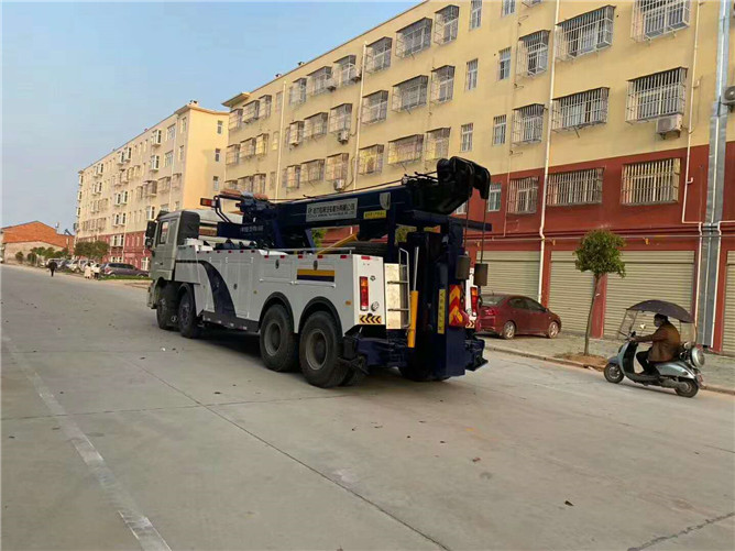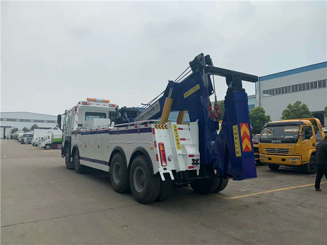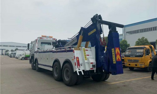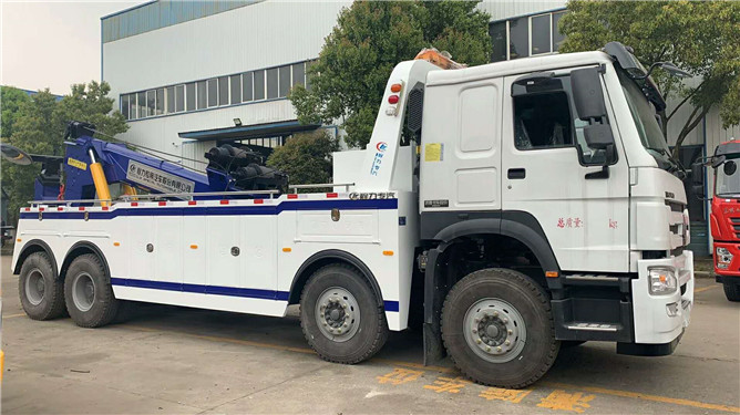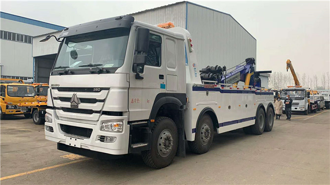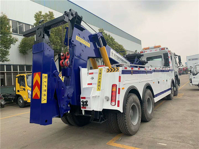 重汽前四后八托吊聯(lián)體清障車,重汽380馬力國五發(fā)動機,豪沃10檔變速箱,9T前橋,16T后橋,帶盤式制動,12.00鋼絲胎,ABS,帶空調(diào)。20T20D上裝(25T20D上裝),進口閥,六邊形二節(jié)式吊臂,三節(jié)式托臂,分體式車廂,雙側(cè)聯(lián)動式操作裝置,后工作燈2只,后指示燈2只,2個100KN液壓鉸盤(45米鋼絲繩),U型抱胎裝置1套,托叉4對,鋼板吊耳托叉1對,拖車座1對,輔助制動氣管總成1套,電子警燈,其余標配。
