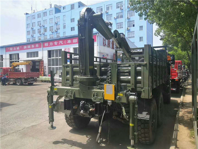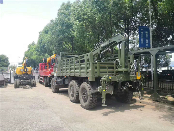 軍用后雙橋隨車吊,6驅,吊機折疊吊,后置更方便,適用于一些復雜路況的隨車吊。