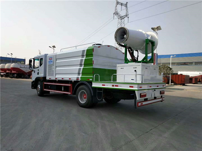 上裝:前沖、后灑(主管道均采用氣動(dòng)閥駕駛室自動(dòng)操作控制)、側(cè)噴、高炮、加大工作平臺(tái),前置百葉窗門消音發(fā)電機(jī)倉(cāng),中置加大容量方型水箱,罐體滿載容積12立方(罐內(nèi)采用環(huán)氧玻璃鱗片防腐處理質(zhì)保兩年)、使用壽命更長(zhǎng),新型罐體、美觀大方,環(huán)保、免征齊全。