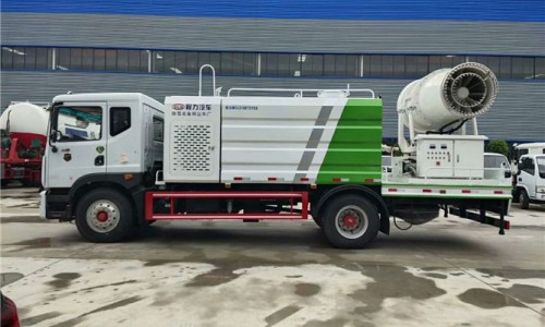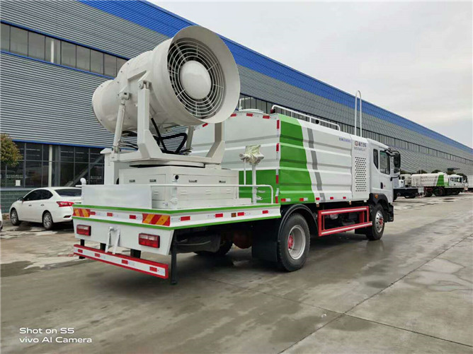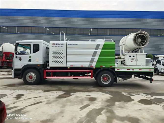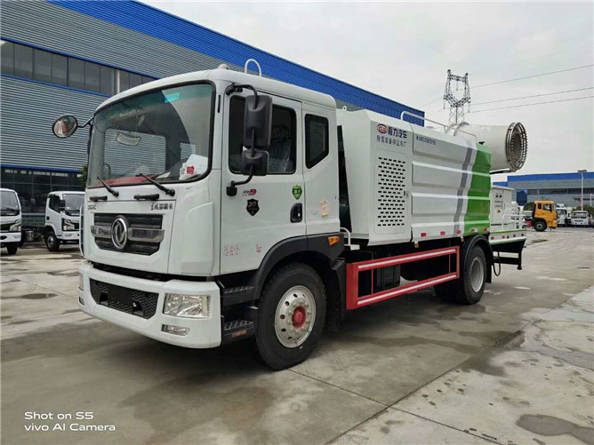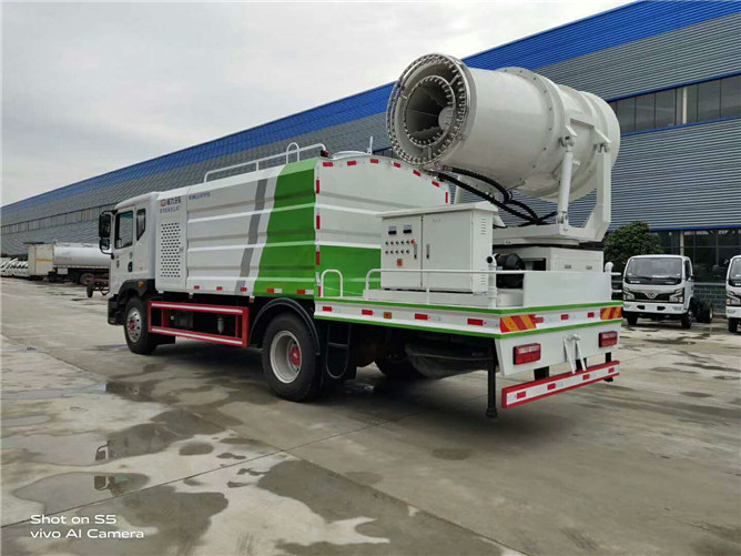 12立方多利卡D9抑塵車軸距4500、搭載玉柴200馬力發(fā)動機,10:00R20鋼絲胎,前沖后灑,(主管道兩個氣動球閥,駕駛室控制,手動保留)側噴,高炮,帶大工作平臺,罐體內環(huán)氧玻璃鱗片防腐處理,前置機艙百葉窗設計,經(jīng)久耐用,平臺可選裝60到100米霧炮。