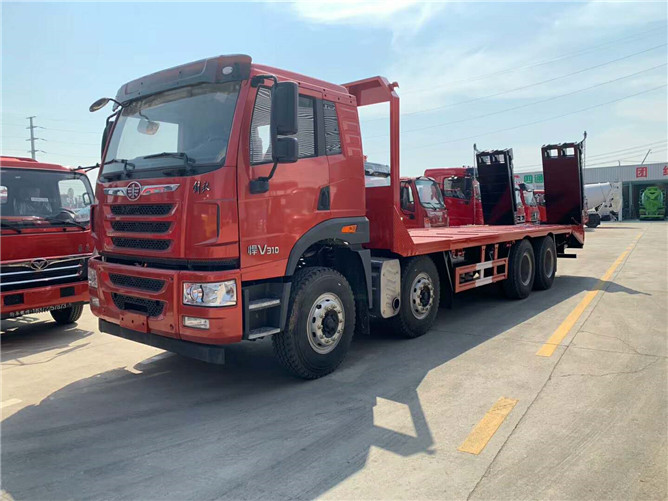 35噸解放平板運(yùn)輸車搭載濰柴310馬力發(fā)動(dòng)機(jī),陜齒10檔變速箱,457橋,11.00鋼絲胎,中控鎖電動(dòng)門窗,空調(diào),8mm花紋板。