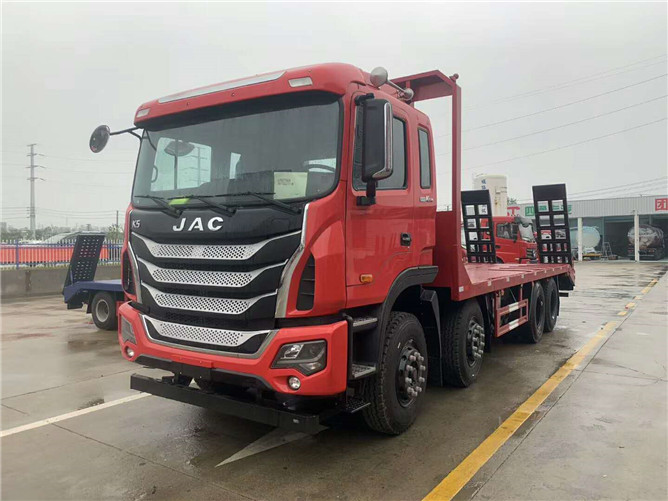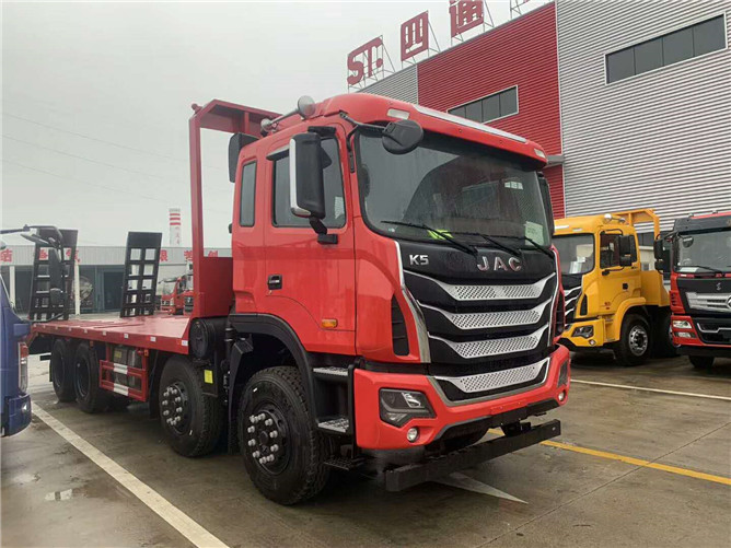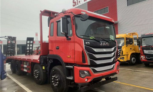 江淮K5前四后八平板車整車型號為HFC5311TPBP1K4H38S3V,濰柴350馬力發(fā)動機,軸距1800十3200十1350.,法士特12檔箱,13噸后橋。1100鋼絲胎,氣囊座椅。302雙層大梁,空調(diào),ABS,行車記錄儀,電動門窗,電動翻轉(zhuǎn)。