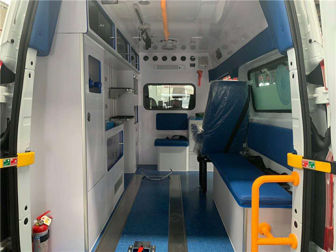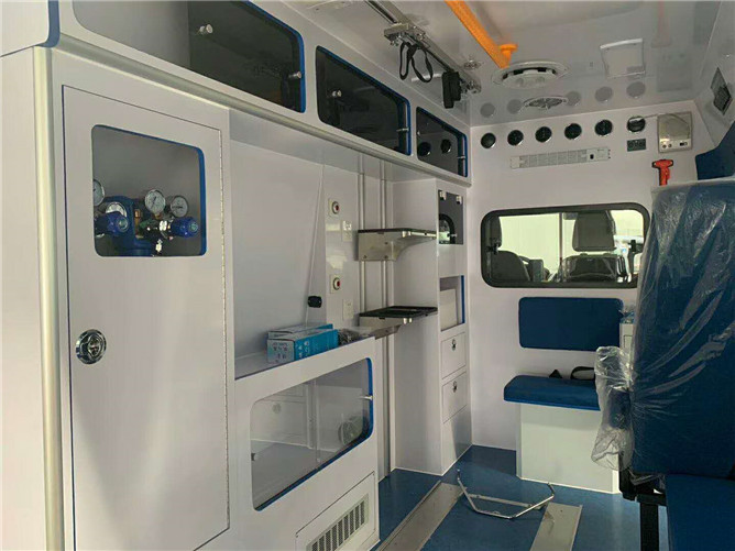 福特V362監(jiān)護(hù)救護(hù)車選裝美式警燈(星際控制器),全車發(fā)泡處理,醫(yī)療倉(cāng)左側(cè)不封窗預(yù)埋處理,玻璃鋼+Pvc板復(fù)合內(nèi)飾頂,12cm耐酸堿阻燃板材柜體,1500W+600W智能逆變 ,全車監(jiān)控。