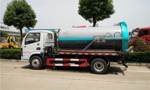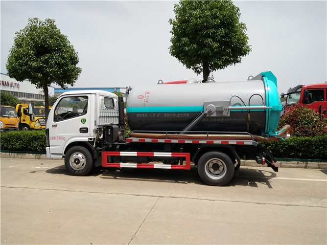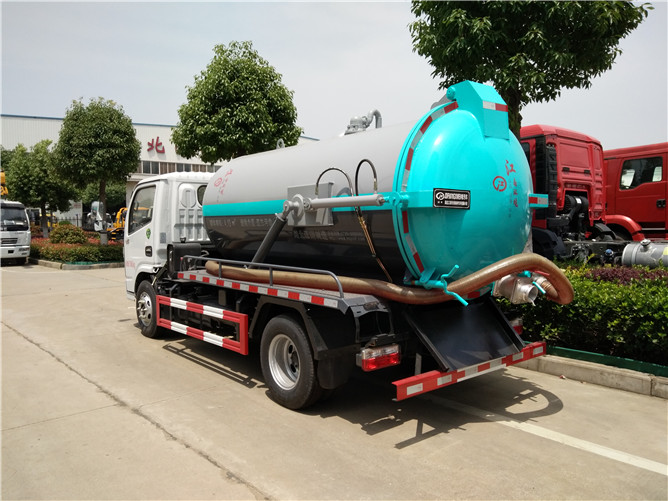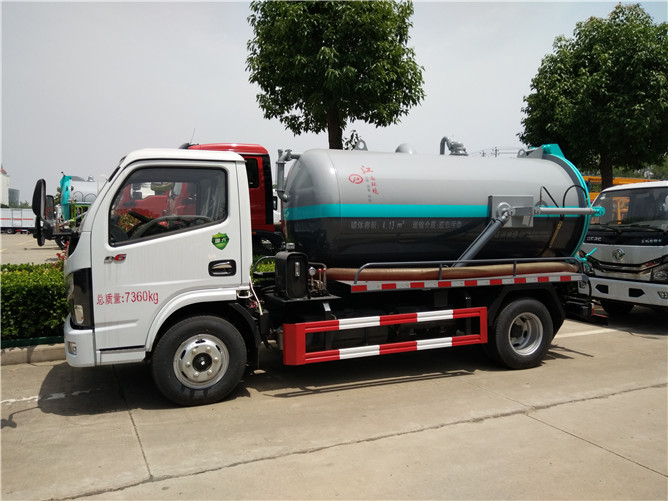 4立方東風(fēng)吸污車罐體采用優(yōu)質(zhì)5-6mm厚碳鋼制作,配億豐真空油泵,水油分離器,防溢閥,洗手裝置,多路換向閥,真空壓力表,視污窗或視污管,罐體后部出口為DN100球閥,罐體可液壓舉升,后蓋可液壓打開,配6米長吸污管。