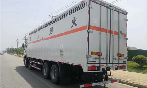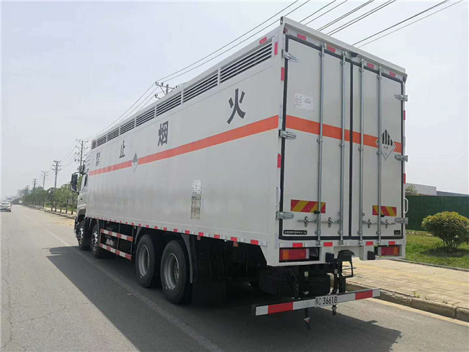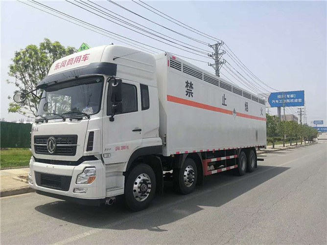 東風(fēng)天龍前四后八雜項危險品運輸車搭載東風(fēng)商用車350馬力發(fā)動機,廂長9.6米,可運輸9類雜項危險品,如含銅廢物、含鎳廢物,適合長途運輸。