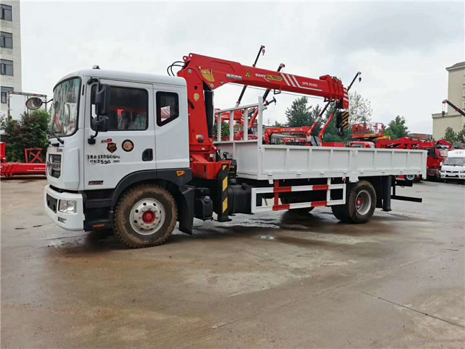 東風(fēng)多利卡隨車吊,搭載康明斯180馬力發(fā)動(dòng)機(jī),8檔變速箱,貨箱長5.6米,上裝配三一7噸四節(jié)臂吊機(jī)。