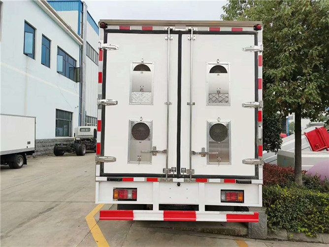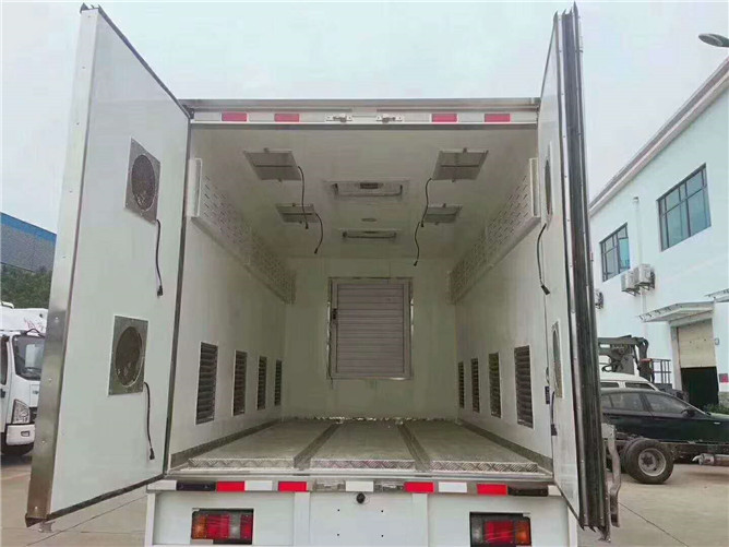 (2)廂板材質(zhì):內(nèi)外壁板選用國(guó)內(nèi)優(yōu)質(zhì)2.2mm玻璃鋼(不吸光、隔熱性好、硬度強(qiáng)、抗氧化);中間保溫層為XPS擠塑聚笨板;廂體厚度8CM。地板采用鋁花紋板,門(mén)邊條采用迷宮式橡膠密封條。