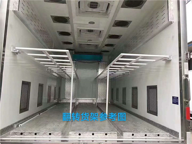 【翻轉(zhuǎn)貨架】廂體兩側(cè)手動(dòng)翻轉(zhuǎn)堆貨貨架;