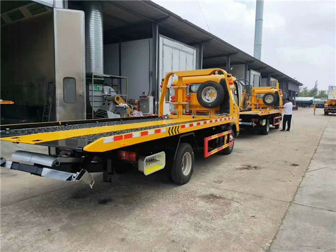 上裝配置:3噸上裝,4噸絞盤,25米鋼絲繩,雙側(cè)聯(lián)動(dòng)操作,沖壓一體板,輔助小車一套,四根捆綁帶。