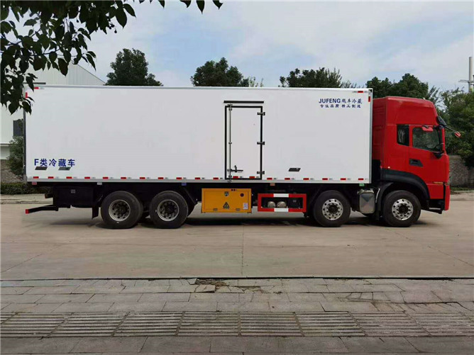 箱體配置:五排導(dǎo)軌、底部加厚通風(fēng)槽(可上叉車)、開利海柜平板制冷機(jī)、工具箱、單側(cè)門、冷機(jī)爬梯。