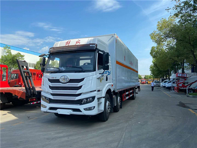 甲醇屬于危險品,且屬于3類易燃液體,瓶裝的甲醇必須由專業(yè)的甲醇廂式運輸車運輸,今天為大家介紹一款解放小三軸的廂式車。