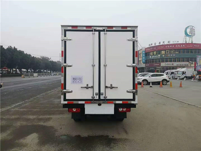 配置:廂體外玻璃鋼內(nèi)不銹鋼,中間充填高密度保溫材料(聚氨脂),車(chē)廂與大梁之間采用橡膠皮廂體下方圓弧處理,后門(mén)為雙層密閉結(jié)構(gòu),并用采迷宮式封條,使車(chē)廂完全封閉,廂內(nèi)安裝紫外線(xiàn)毒消燈,加裝自動(dòng)消毒噴霧器。車(chē)廂內(nèi)配裝紫外線(xiàn)消毒殺菌設(shè)備,配零下五度制冷機(jī)組。