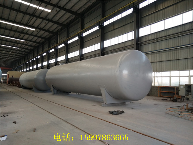 63立方液化氣貯存罐在一些中型液化氣充裝站內(nèi)經(jīng)常用到,它的設(shè)計壓力為1.77MPa,直徑2700mm,總長度11.5米,滿載可裝載25噸LPG介質(zhì)。