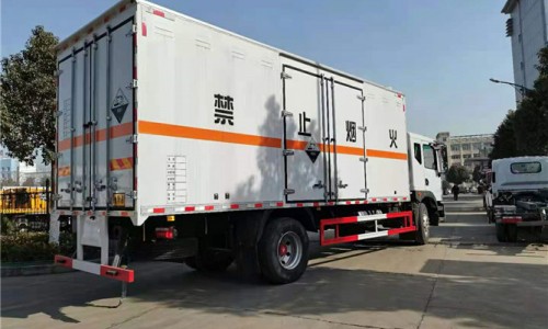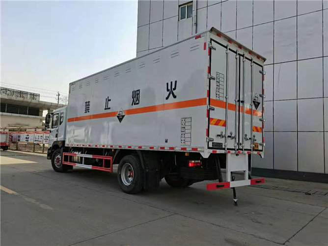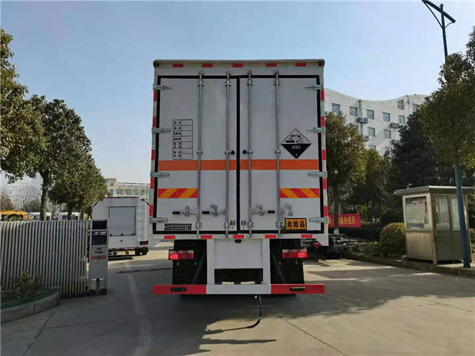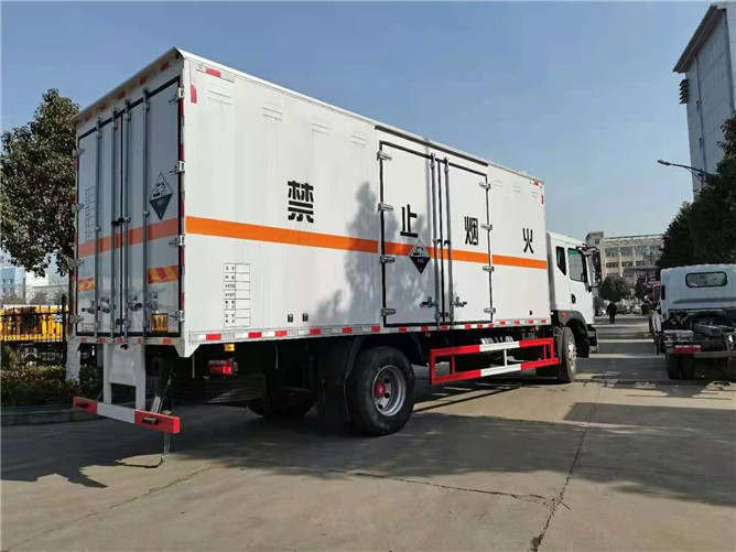 廂體配置:廂體為雙層金屬結(jié)構(gòu),外板采用靜電屏蔽冷軋鋼板,中間為B1級阻燃泡沫,內(nèi)飾為鋁板。底板為花紋板,右側(cè)選裝側(cè)門,平鋪靜電膠皮,廂體左右兩邊安裝臥環(huán)。門框帶防盜報警器,頂部帶煙霧報警器,2個滅火器,帶危險品頂燈,防火帽。