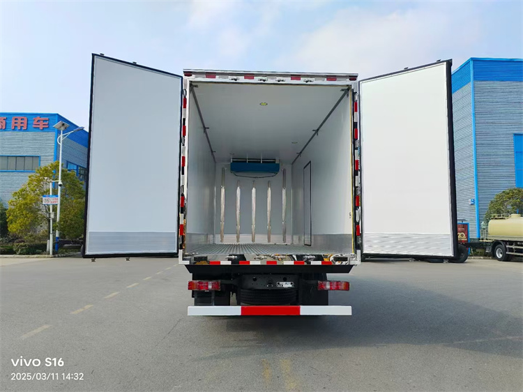 廂體配置:高端冷藏車箱體,雙木斷橋工藝,內(nèi)外玻璃鋼材質(zhì),80mm厚冷鏈專用保溫層,右側(cè)單開(kāi)門,尾部雙開(kāi)門,不銹鋼門框及鎖件,后門雙鎖桿,滿焊下沉式通風(fēng)槽,一體式型材30公分高裙邊,加工具箱,加爬梯,箱內(nèi)前板加5根通風(fēng)槽,其余標(biāo)配。