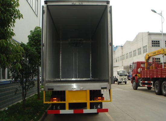 用戶使用需求可加裝駕駛室空調(diào)和方向助力。 廂板為三明治式結(jié)構(gòu),內(nèi)外蒙皮,中間輕鋼龍骨架及8厘米高密度聚胺脂保溫材料,采用國際先 進(jìn)的大型真空負(fù)壓機(jī)一次性負(fù)壓成型,表面光潔平整,強度高,整體質(zhì)量輕,保溫性能良好,無滲漏。 廂體內(nèi)外蒙皮可根據(jù)用戶的實際需求選 用玻璃鋼板,鋁合金板,彩鋼板,不銹鋼板等材質(zhì)制作。用戶也可以根據(jù)運輸介質(zhì)的不同選裝滑道,肉鉤,通風(fēng)槽,側(cè)開門等。 客戶可以根據(jù)實 際用途,及運輸介質(zhì)的不同選用制冷機(jī)組,我公司制冷機(jī)組全部選用國內(nèi)外知名品牌,溫度可以達(dá)到零上 18度—零下 18度。全國聯(lián)保。 | |||