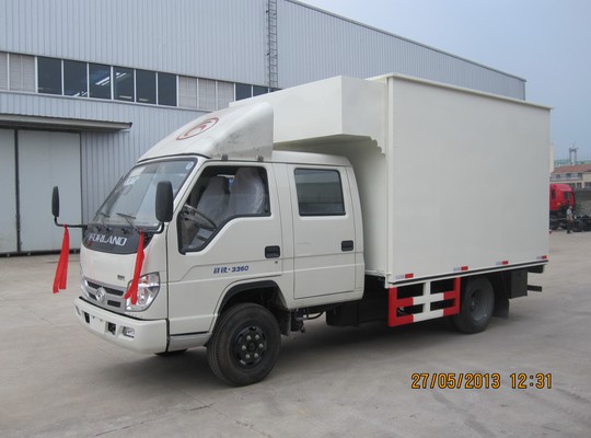福田原廠祥銳底盤改裝,該車軸距為3360mm 選用安徽全柴動(dòng)力四缸95匹馬力發(fā)動(dòng)機(jī) 。駕駛室?guī)ХD(zhuǎn),燃油種類為:柴油 排