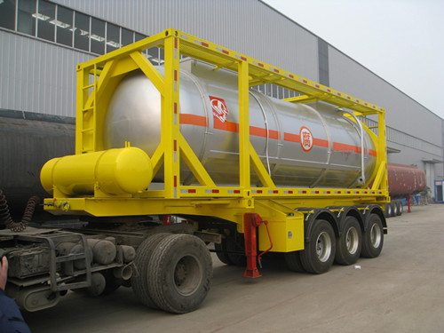 黃磷罐式集裝箱由罐體和箱體框架兩部分組成,裝貨時貨物由罐頂部裝貨孔進入,卸貨時,從頂部裝料口吸出,罐體為圓形,采用不銹鋼或錳鋼、外加高強度加強箍,安全高效。框架采用矩形結構鋼材,質(zhì)量輕強度大。