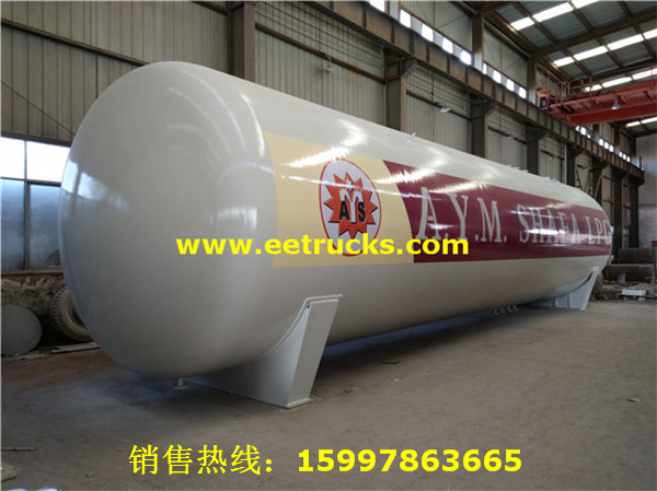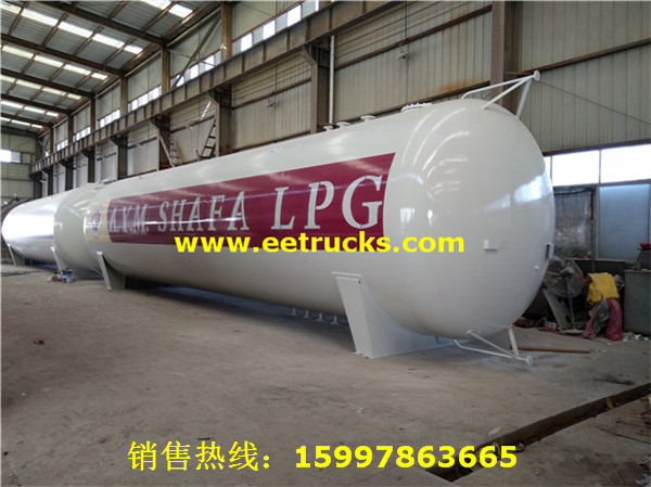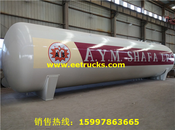 150立方液化氣儲罐設計壓力為1.77MPa,設計直徑為3800毫米,筒體厚度為20毫米,封頭為22毫米,可以裝載60噸液化氣。