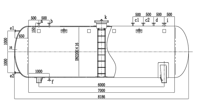 液氨儲罐須按照《固定式壓力容器安全技術(shù)監(jiān)察規(guī)程》和GB150-2011《壓力容器》設(shè)計(jì),30立方液氨儲罐按要求取設(shè)計(jì)壓力2.16MPa,直徑常取2200mm,采用Q345R壓力容器用鋼板制作,筒體厚度16mm,封頭厚度18mm,總長8.2米,可以盛裝15噸液氨介質(zhì)。