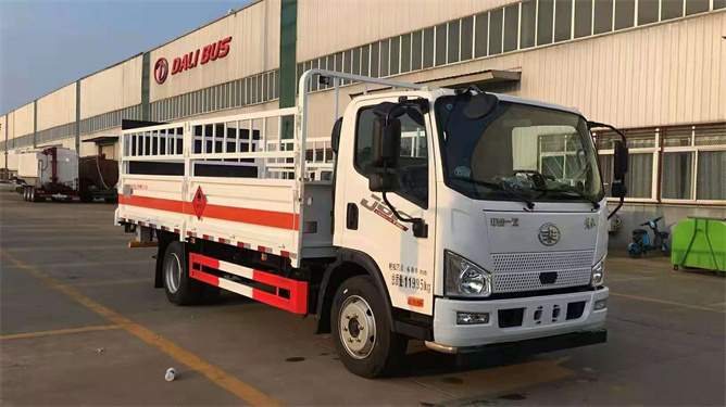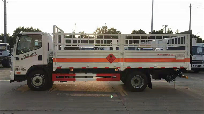 該車為倉(cāng)欄式氣瓶運(yùn)輸車,多用于鋼瓶高度較高的如氧氣瓶等,一些運(yùn)輸液化石油氣鋼瓶的物流公司則多傾向于選擇廂式運(yùn)輸車。