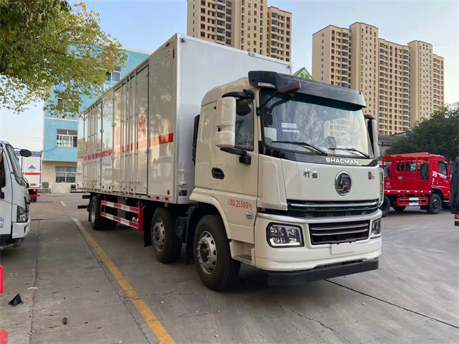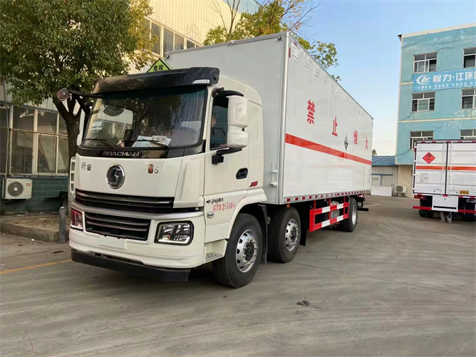據(jù)悉,此輛陜汽軒德危險品運輸車是新出的一款黃牌危險品運輸車,貨廂尺寸為:8600*2450*2500 mm,底盤結構為小三軸式,緊湊但裝載能力超強,玉柴245馬力的發(fā)動機表現(xiàn)優(yōu)越,很適合長途運輸作業(yè)。