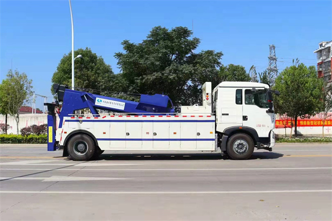 現(xiàn)如今無(wú)論是小型汽車還是大型的商用車市場(chǎng)保有量均呈上升趨勢(shì),隨之出現(xiàn)的交通事故也有所增加,因而清障車應(yīng)運(yùn)而生,尤其是一些流量較大的交通要塞,而一些大型的商用車更需要拖吊能力更強(qiáng)的大型清障車才能完成清障作業(yè),今天為大家推薦一款50噸重汽一拖一清障車。
