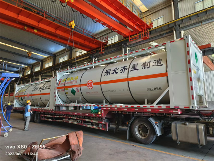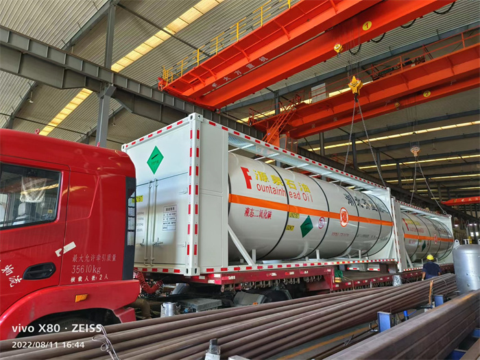 今天,最后兩臺30英尺二氧化碳罐式集裝箱在經(jīng)過我公司質(zhì)檢人員的檢驗后準備裝車發(fā)往延安。這也是該大型石油企業(yè)在我公司定購的8臺罐箱的最后兩臺。