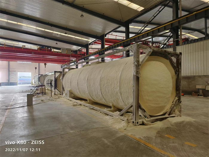 11月上旬,我公司接的一批20英尺環(huán)氧乙烷罐式集裝箱訂單仍在加緊生產(chǎn)中,已接近尾聲,一些正在進(jìn)行發(fā)泡作業(yè)(見(jiàn)下圖),力爭(zhēng)按時(shí)交付客戶。