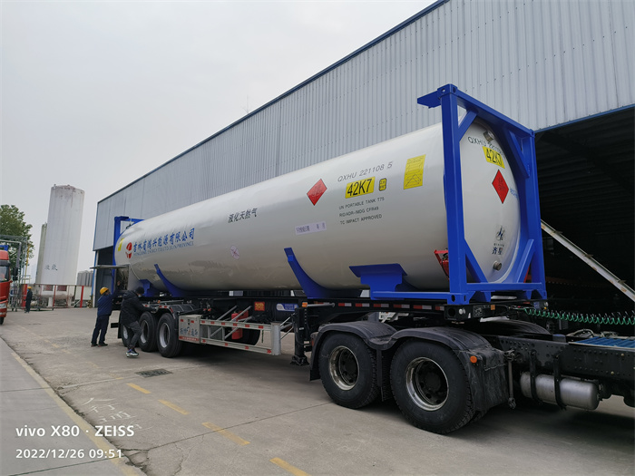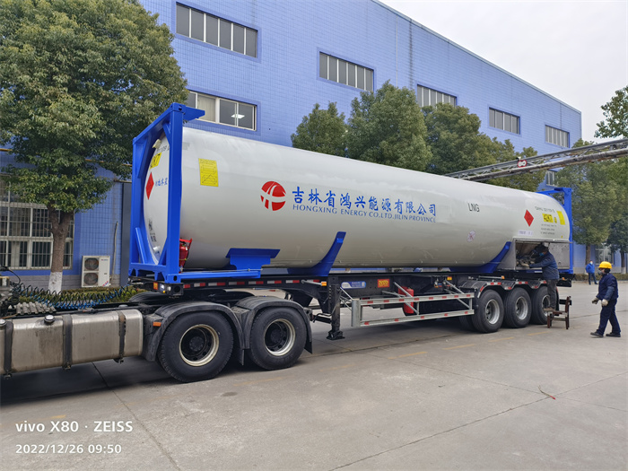 12月16日上午,兩臺經(jīng)過CCS認證的40英尺LNG罐式集裝箱正在裝上半掛車,準備發(fā)往吉林一能源公司,也是我公司該月以來交付的第二批LNG罐式集裝箱產(chǎn)品。