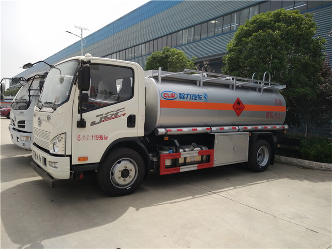 該款加油車采用解放底盤,配置單排駕駛室,濰柴160馬力發(fā)動(dòng)機(jī),多功能方向盤,150L鋁合金油箱,帶國(guó)產(chǎn)ABS,定速巡航,空調(diào),后處理器前置,且裝有爆胎應(yīng)急安全裝置,是危險(xiǎn)品專用底盤。