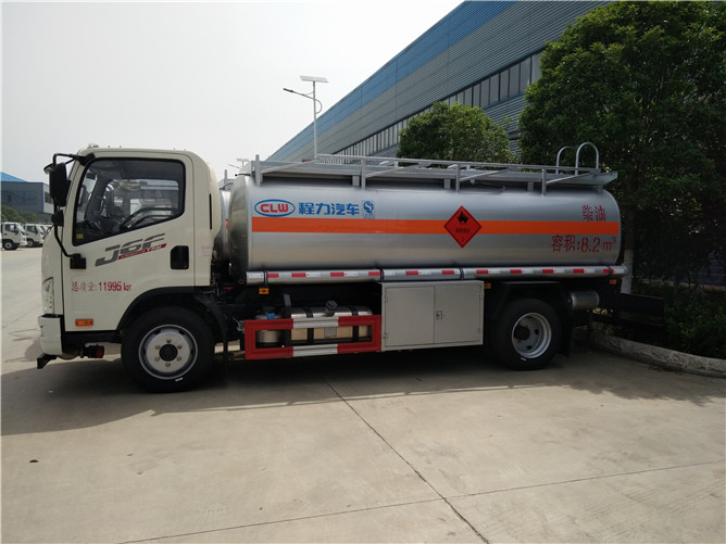 8噸加油車的罐體容積為10.5立方,單倉(cāng)帶泵(可泵進(jìn)泵出),全套歐標(biāo)(歐標(biāo)罐口、海底閥、下裝油口、油氣回收),帶大流量稅控加油機(jī),配兩根輸油管。