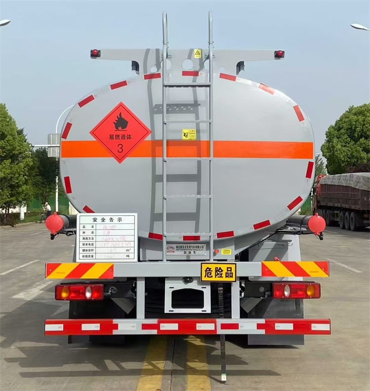 罐體配置:公告容積15.7立方,采用Q235優(yōu)質(zhì)碳鋼板材,標(biāo)配大流量油泵(可泵進泵出),標(biāo)配通倉帶歐標(biāo)全套下裝油系統(tǒng)(含1個下裝卸油閥、1個油氣回收閥、1個油氣回收接口、1套氣動組合開關(guān)、1個防溢流探桿和1個插座),一只歐標(biāo)罐蓋,一個海底閥,罐體頂部兩側(cè)帶折疊升降防護欄,標(biāo)配顏色灰色,罐體兩側(cè)正中貼橙色反光帶,貼三個“易燃液體”標(biāo)識,安全告示牌,合適位置安裝一只工具箱,其它均為廠家標(biāo)配。