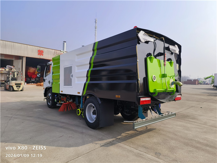 洗掃裝置主要配置:副發(fā)動(dòng)機(jī)、風(fēng)機(jī)、高壓水泵、清水箱約10立方、垃圾箱約7立方、左右立掃、帶噴水桿的寬吸嘴、低壓沖洗系統(tǒng)、掃盤降塵系統(tǒng)、液壓系統(tǒng)、專用裝置電控系統(tǒng)和副車架等改裝而成,副發(fā)動(dòng)機(jī)采用康明斯170馬力,帶2個(gè)中置掃盤,力頓馬達(dá),海普瑞斯電磁閥,海普瑞斯油缸,GTM高壓水泵,高壓前角噴,高壓后噴霧,高壓卷盤,高壓路沿清洗噴頭,低壓前對(duì)沖,垃圾箱高壓自潔,CAN總線控制+尾部操作盒,LED箭頭燈,垃圾箱、水箱帶防溢低水位報(bào)警裝置,可視影像!