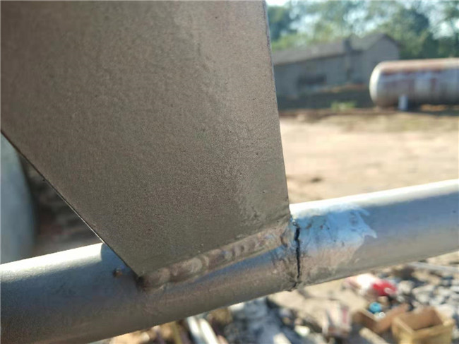 據(jù)悉,此次維修是應用戶江總的要求,前半個月左右江總從我公司提走3臺100立方液化氣儲罐,后來卸貨吊裝時,因操作人員失誤,儲罐外面一根DN32的液位計接管與水泥基座相撞,液位計與角鋼焊接的地方斷裂了60%,出現(xiàn)了一個裂口,必須重新焊接。