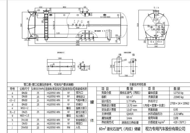 液化氣儲(chǔ)罐設(shè)備用于貯存液化石油氣介質(zhì),具有承壓、密閉的特點(diǎn),在使用過程中還要接受檢驗(yàn)部門的檢查。儲(chǔ)罐的規(guī)格型號(hào)繁多,60立方液化氣儲(chǔ)罐在一些中等規(guī)模的液化氣站中經(jīng)常用到,根據(jù)直徑不同主要分為直徑2700mm,直徑2800mm二種。主要參數(shù)如下: