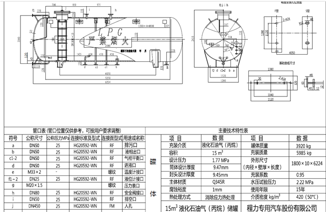 15立方液化氣儲(chǔ)罐在液化氣用量不大的小鄉(xiāng)鎮(zhèn)的氣站中用的也較多,通常設(shè)計(jì)成直徑1800mm,筒體厚度10mm,封頭厚度12mm,按液化石油氣420kg/m3密度計(jì)算,可以裝載6噸左右氣體,以下為標(biāo)準(zhǔn)15立方液化氣儲(chǔ)罐的配套安全附件清單,供各位購買時(shí)參考: