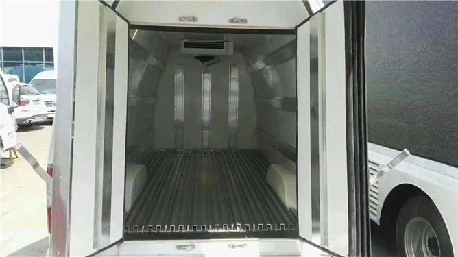 此款冷藏車整車型號:BJ5039XLC-E2,搭載航天三菱4K22D4M汽油發(fā)動機,160馬力,2.37排量,3050軸距,ABS+EBD,駕駛室冷暖空調(diào),電動門窗,方向助力,電子可調(diào)大燈,整車尺寸5320×1695×2430(mm),貨廂尺寸2900×1400×1430(mm),箱體內(nèi)外玻璃鋼,5-200px高密度保溫板,后雙開門,門鎖件為不銹鋼。標(biāo)配KL180D制冷機組,可選裝五面通風(fēng)槽,溫濕記錄儀。