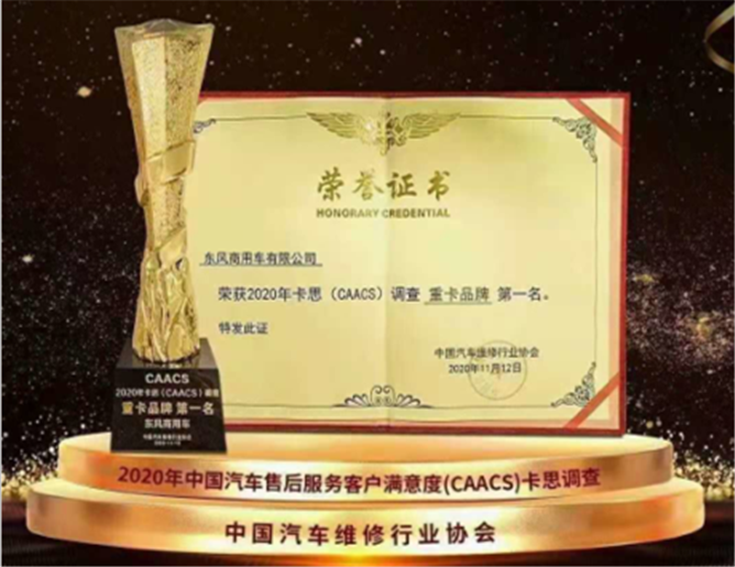 近日,在2020年中國汽車售后服務(wù)客戶滿意度(CAACS)卡思調(diào)查中,東風(fēng)商用車脫穎而出榮獲2020年卡思調(diào)查重卡品牌第一名。