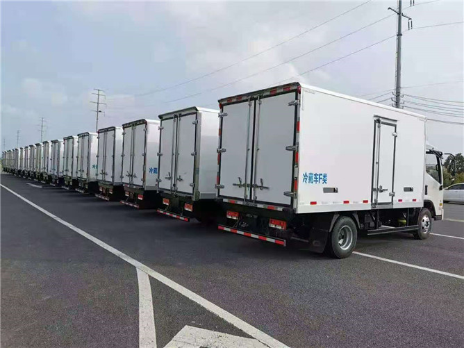 廂體配置:箱體內(nèi)外為玻璃鋼,200px高密度保溫板,底板是防滑花紋鋁板,鋁合金材包邊,門鎖件為不銹鋼,單側(cè)門。車載制冷機(jī)最低溫度-15度。